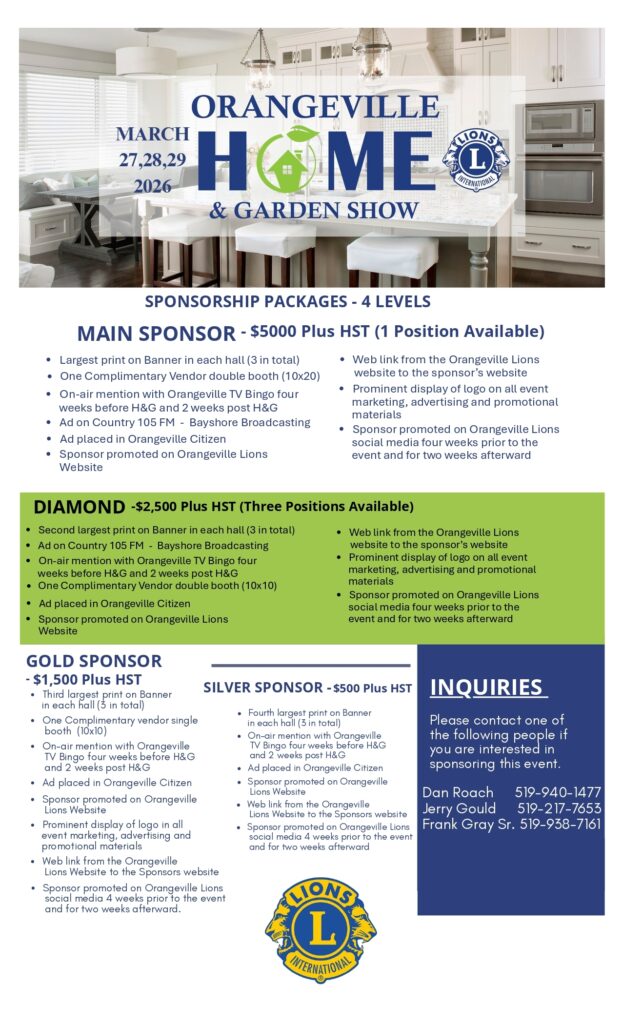 VISIT OUR 27TH ANNUAL ORANGEVILLE LIONS HOME AND GARDEN SHOW